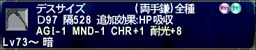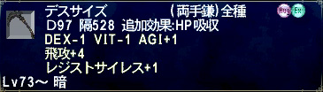 ・STR+4 ウェポンスキルの命中+15 ・DEX+4 クリティカルヒットのダメージアップ+2%